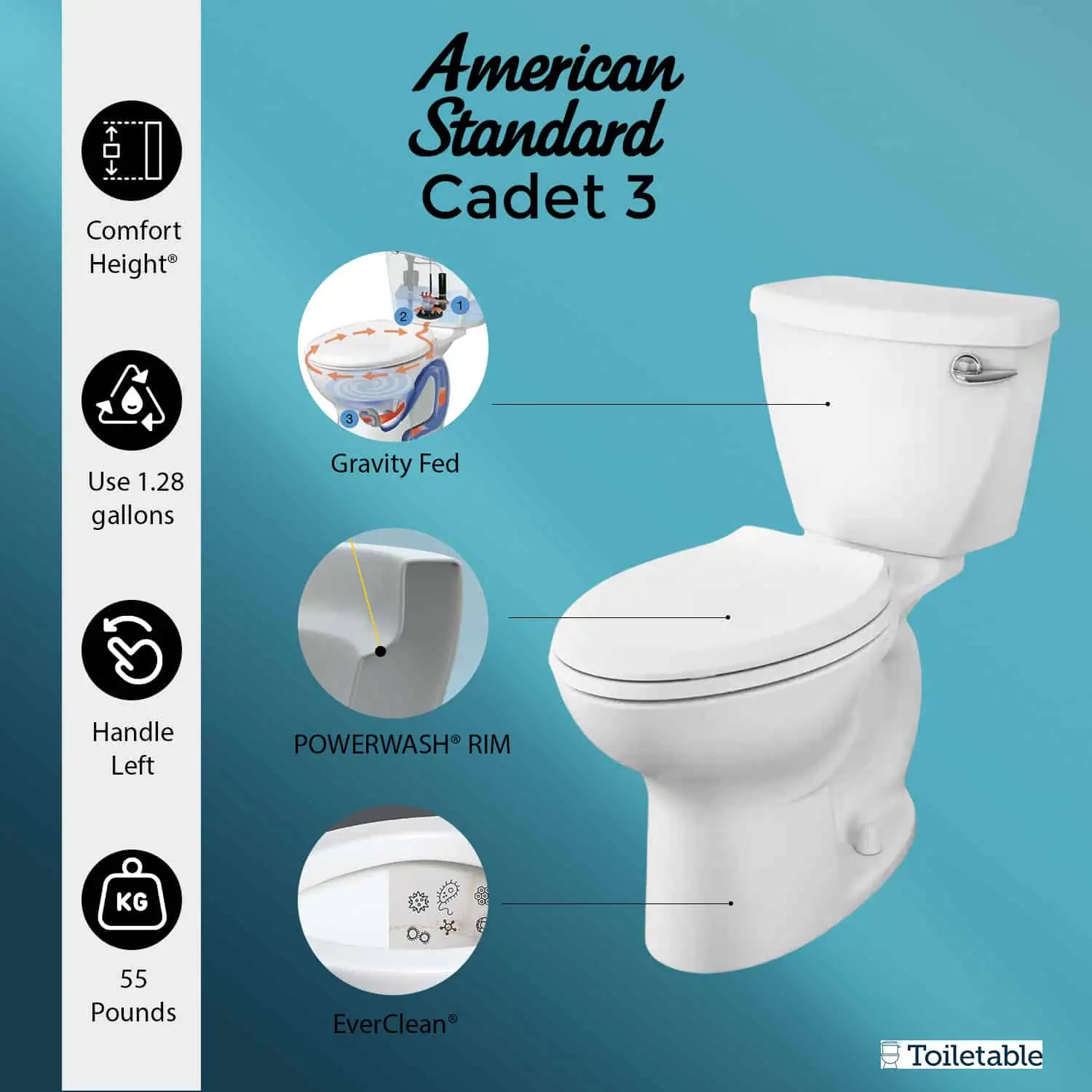 The most common praise about the American Cadet 3 is the toilet’s suction strength. Reviewers love how fast waste loads are removed and are impressed with the toilet’s refill rate.